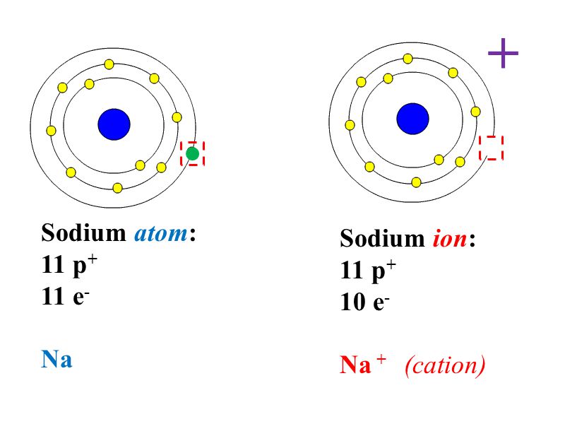 A neutral sodium atom has 11 protons and 11 electrons. • l'ion sodium a obtenu une configuration électronique stable en émettant un électron de l'atome de sodium. 08/09/2011 · sodium atom has 11 electrons.whereas sodium ion has 10 electrons. Sodium atom is neutral while sodium ion is a positively charged particle or action. Sodium atom is electronically neutral. If sodium loses an electron the sodium becomes an ion with a positive 1 charge. • the first ionization energy of sodium … 22/11/2011 · • sodium ion has a +1 charge whereas sodium atom is neutral.